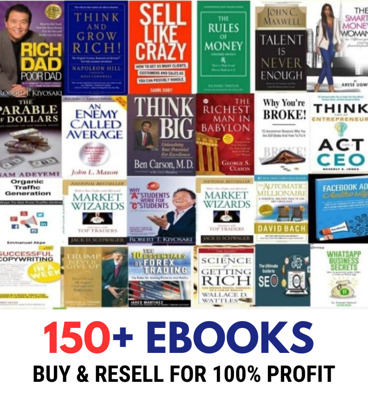 This image showcases a premium collection of over 150+ high-value eBooks curated for the LVG Academy Digital Library. The collection focuses on personal finance, wealth creation, business strategy, and digital marketing, designed specifically for aspiring entrepreneurs looking to gain a competitive edge in the global market. Collection Highlights This bundle includes some of the most influential titles in modern business and self-development, such as: Financial Mastery: Classics like Rich Dad Poor Dad by Robert Kiyosaki and The Richest Man in Babylon by George S. Clason. Business Strategy: Sell Like Crazy by Sabri Suby and Think Big by Ben Carson. Success Mindset: Napoleon Hill’s Think and Grow Rich! and John C. Maxwell’s Talent is Never Enough. Digital Skills: Comprehensive guides on Facebook Ads Authority, WhatsApp Business Secrets, The Ultimate Guide to SEO, and Organic Traffic Generation. The "Buy & Resell" Opportunity A unique feature of this specific bundle is the Resell Rights mentioned in the promotion. This allows buyers to: Learn: Gain personal knowledge from world-class authors and experts. Resell: Capitalize on the 100% profit opportunity by retailing these digital assets to their own audience. Scalability: Perfect for young Ghanaians and Cameroonians looking to start a low-capital "Digital Reselling" business, as highlighted in LVG’s entrepreneurial guides.